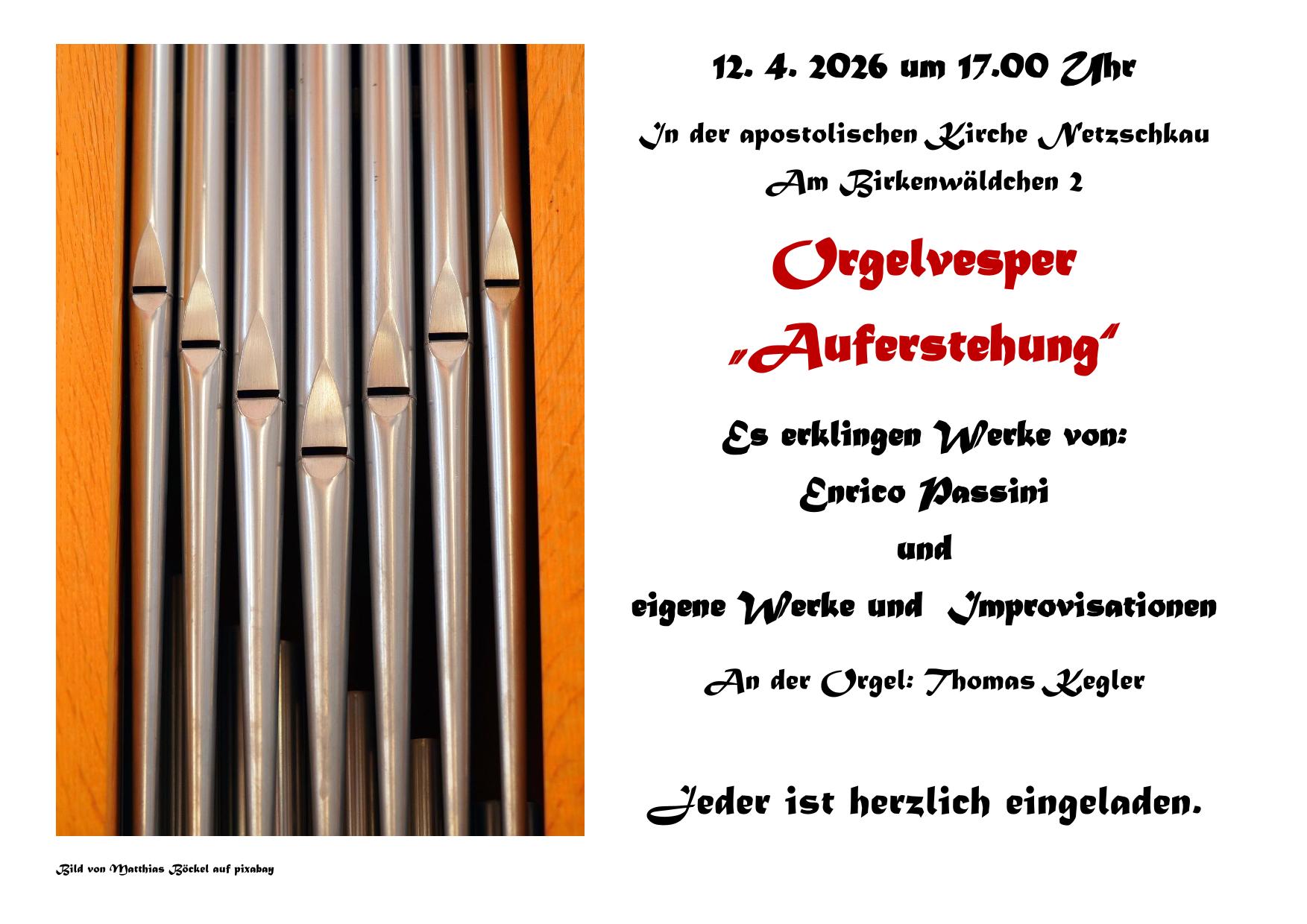 Orgelvesper „Auferstehung“ am 12.4.2026 um 17:00 Uhr